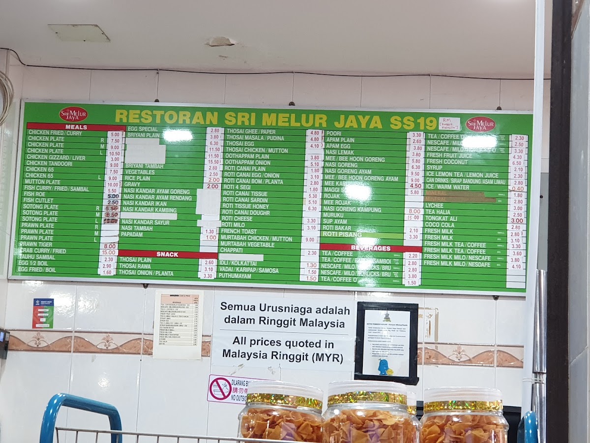 Sri Melur Jaya Restaurant Menu